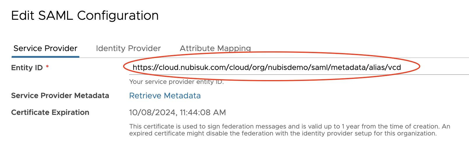 With your SAML application now configured in Entra, return to Cloud Director and the SAML Configuration page (Administration > Identity Providers > SAML).