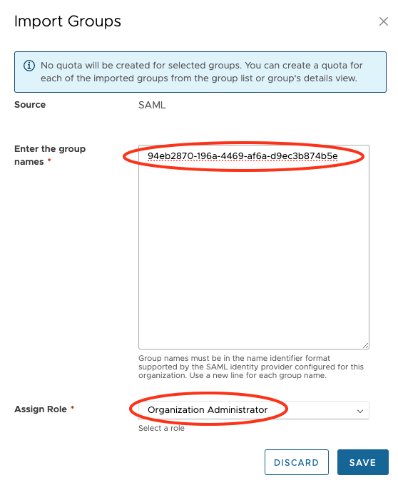 The exact structure of your security groups will need to be agreed within your organisation. As a starting point, we would suggest having a 1-1 mapping between security group and VCD role (e.g. Organisation Administrators).